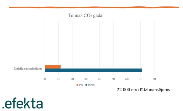 Nomainot šādu fosilā kurināmā katlu pret modernu un augstas efektivitātes siltumenerģijas avotu (piemēram, biomasas katlu vai jaunu, efektīvu gāzes iekārtu), uzņēmums panāk: